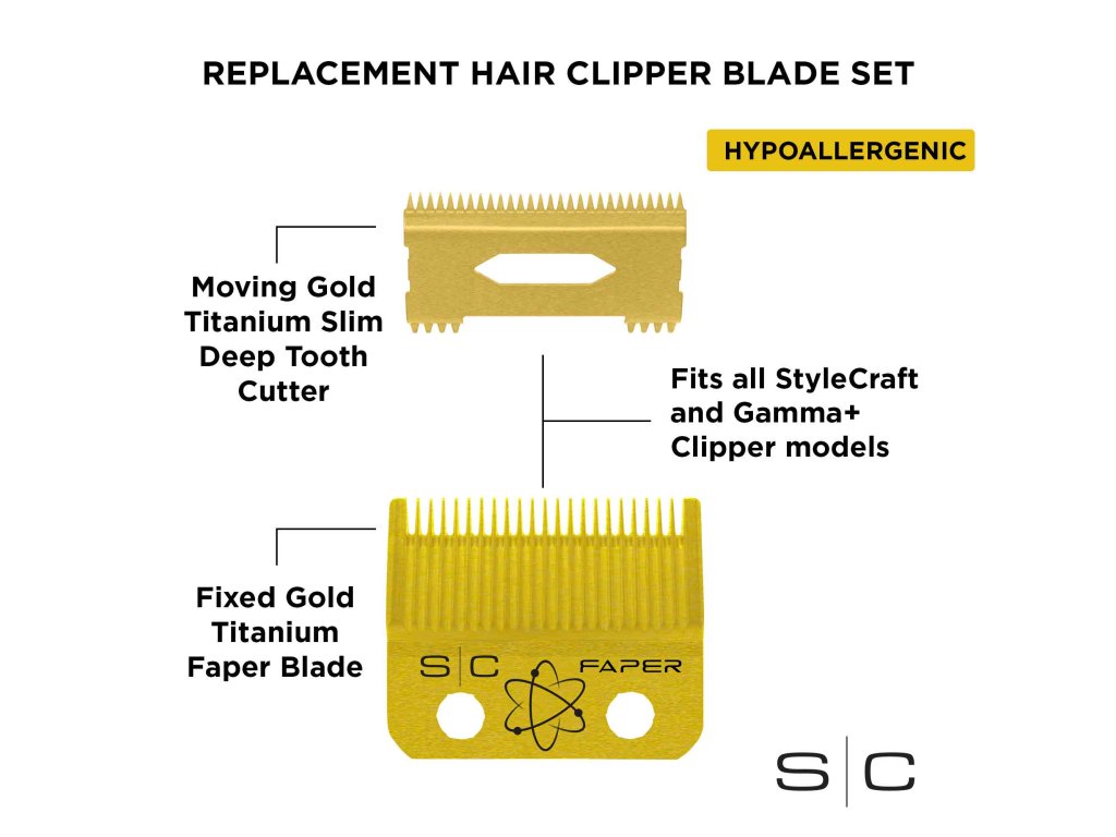 S|C FAPER GOLD + SLIM DEEP GOLD BLADE SET = luxusní vzhled, precizní střih a maximální spolehlivost pro profesionální výsledky.