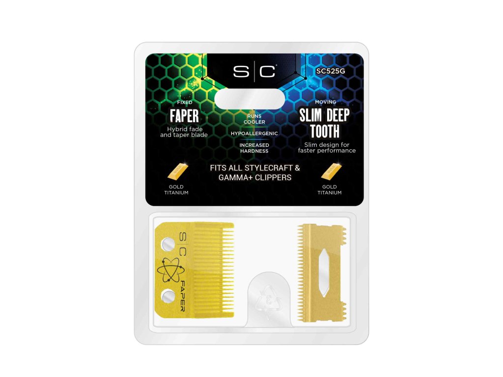 Profesionální náhradní sada čepelí S|C v prémiovém zlatém provedení. Kombinace pevné Faper GOLD čepele a pohyblivé Slim Deep GOLD čepele poskytuje ultra hladký střih, dlouhotrvající ostrost a elegantní vzhled vašeho zastřihovače.
